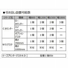 ※保証を受ける際は、カウネットの納品書とメーカーの取扱説明書(保証書)が必要となります。※【返品に関するご注意】開梱または組み立て開始後のお客様組立て家具は、お客様のご都合による返品はお受けできません。※単体でのご使用はできません。※WSデスク高さ700タイプ・イーゴプリンターテーブルADと組合せてご使用下さい。※引出を取り付けた場合、WSデスク高さ700タイプの下肢空間の高さは630mmとなります。