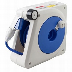すっきり収納、軽量コンパクトタイプのホースリール。内径7.5mmスリムホース10m巻き。通水/止水の切り替えがワンクリックでできるコンパクトノズル。水形はキリ・ストレート・ジョロ・シャワーの4種類。