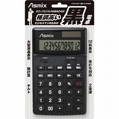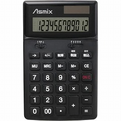ビジネスカラー電卓。12桁。チルトあり。税率・メモリー・切り捨て・四捨五入・切り上げなどあり。