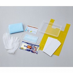 ●セット内容/(1)マスク×1枚(2)プラスチックガウン×1枚(3)プラスチックグローブ×2双(4)ペーパータオル(2枚重ね)×10組(5)ハクゾウジアパック1000(5枚入)×1袋(6)ゴミ袋×1枚(7)トレー×1枚(8)使用手順書(A5サイズ)×1枚