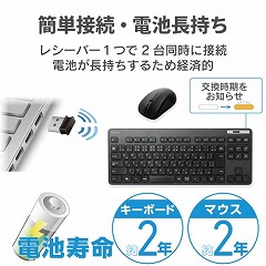 ●セット構成/無線薄型コンパクトキーボード×1、無線BlueLEDマウス×1、共通レシーバー×1、動作確認用単4形乾電池、単3形乾電池各1、、ユーザーズマニュアル×1
