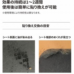 店舗の美観向上と油汚れによる転倒事故対策を両立する裏面シール仕様の油取りシートです。飲食店やスーパーマーケットにおける厨房床からの油汚れ拡散対策に。