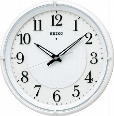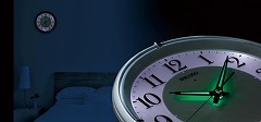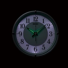 周囲が一定の暗さになると自動的に文字板、時分針が点灯する電波時計です。暗い場所でも見やすいすっきりとしたデザインです。