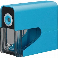 縦にも横にも置けてとってもスリム。持ち運べる。乾電池式電動シャープナー。