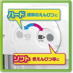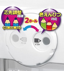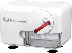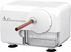 色鉛筆も電動で削れる電動シャープナーDUO。ダイヤルでハードとソフトを簡単切替。待機電力0W。