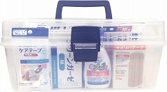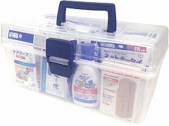応急処置に必要な衛生用品一式が網羅された充実内容の救急セットです。持ち運びしやすい持ち手つきのクリアケースに入っており便利に使用できます。オフィスの備蓄用としてもご使用いただけます。
