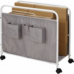 ダンボールの収納専用のスタンドです。カバーがあるので中身を隠せます。ポケットには梱包に使うテープやひも、カッターなどが収納できます。