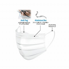 飛沫に強い3層構造BFE≧99%、PFE≧99%(0.1μm)ΔP<4.0めがねが曇りにくいメッシュ加工付きノーズピースにアルミ板を使用しているためフィット感があります