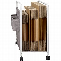 ダンボールの収納専用のスタンドです。カバーがあるので中身を隠せます。ポケットには梱包に使うテープやひも、カッターなどが収納できます。