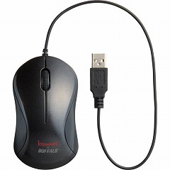 バッファローとカウネットの共同開発!ノートPCでの利用でケーブルが邪魔にならないショートケーブルマウス。高感度BlueLED採用で高い読取性能を実現。クリック音が気にならない静音スイッチを採用。