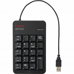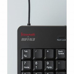 バッファローとカウネットの共同開発!ノートPCでの利用でケーブルが邪魔にならないショートケーブルテンキー。「Tabキー」と「00キー」を搭載し表計算に最適。ラバーフットを搭載し安定したタイピングを実現