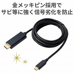 USB Type-C端子を搭載したパソコンの映像信号を変換し、HDMI入力端子を搭載したディスプレイなどに出力することができる変換ケーブル。