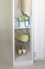 ロッカー内のデットスペースをマグネットが付いた棚を使い有効活用できスッキリきれいに小物を整理。内寸法の狭い4人用ロッカーにお勧め。