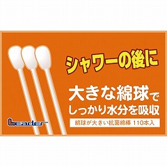 シャワーやプールの後の耳のお手入れに。通常の綿棒の約1.5倍の大きさの綿球なのでソフトな肌触りで吸水性に優れています。キトサン抗菌加工済み。