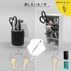 縦置き・横置き両用のペンスタンドです。仕切り板には傾斜がつき、ペンが交差することなくスムーズに出し入れが可能です。4段に分かれた収納スペースは消しゴム等の小物収納にも便利です。