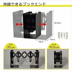 書籍の量に応じて開閉幅を調節できる伸縮型ブックエンドです。丈夫で耐久性の高いスチール素材は、堅固で形崩れしにくく、書籍の重さで生じるズレや開きを防止。背あてにより後方に書籍がおちることもありません。