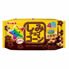 サクッジュワ食感のチョコをしみ込ませたパフが美味しいしみチョココーン。食べきりサイズを4袋入れたマルチパックです。
