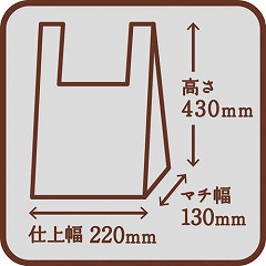 ●総幅(仕上幅+マチ)×高さ(mm)/350(220+130)×430