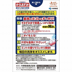 ●成分/消臭剤(DEOATAK、フラボノイド)、酵素、酸素系漂白剤(過硫酸塩)、賦形剤、界面活性剤(アルキル硫酸塩)、発泡剤(重炭酸塩、クエン酸、炭酸塩)、結合剤、歯石防止剤、香料、色素