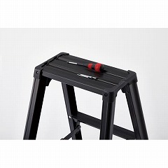 大人気の脚軽シリーズ。踏ざん裏に張りを持たせ、肩当たりを柔らかくさせた利用者に優しい設計。またワンタッチバー機能で、簡単に脚立の折りたたみが可能。とにかく軽くて丈夫な脚軽の進化版ブラック。