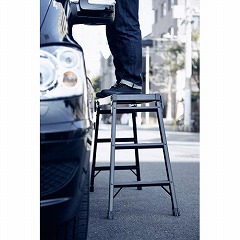 部品に至るまでオールブラックの足場台。軽量で扱いやすく、折りたたみ構造なので、収納場所も取りません。SGマーク・Aマーク取得品。