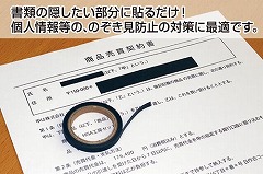 書類の部分的な目隠しに!キレイにはがせる再剥離タイプ。テープなので必要な長さにカットして使えます。貼ったままコピーやFAXができます。33ポイント程度の文字が隠せる12mm幅。