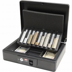 収納力抜群で大型サイズの独立式コイントレーを内蔵!収納力抜群で簡易レジとして使用できる大型金庫