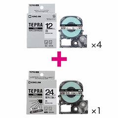●セット内容/テプラPROテープ 白ラベル 12mm 黒文字×4個、テプラPROテープ 屋外に強い 白ラベル24mm黒文字×1個
