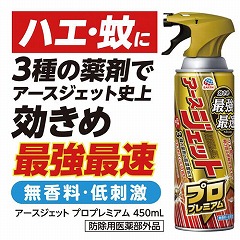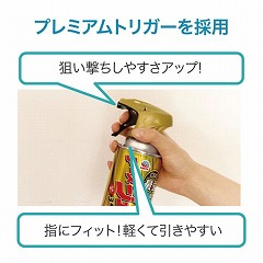 日本唯一の3種の薬剤の高濃度処方で、アースジェット史上効きめ最強最速を実現したハエ・蚊・ゴキブリ用駆除スプレーです。狙いやすいプレミアムトリガーですばやいハエも逃さず駆除できます。