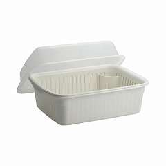 バスケット、本体(水受け)、フード(フタ)のセット。プラスチック製なので食器あたりが優しく、軽くて扱いやすい。