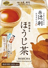 辻利の茶匠厳選茶を使用した、手軽に本格的な味わいを楽しめるインスタントスティックほうじ茶です。焙じた茶の香ばしくまろやかな味わい。お湯でも水でも簡単に溶けます。