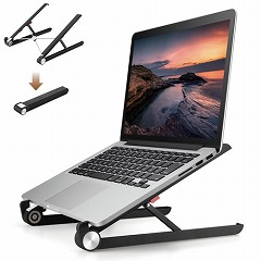 ノートPCの画面部分を上げ目線をあげることできPC作業時の姿勢を改善することができる、コンパクト折りたたみタイプのノートPCスタンドです。