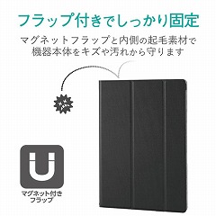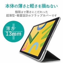 傷に強いポリカーボネートを使用し保護力を保ちつつ、極限まで薄さにこだわった超薄型・軽量設計のiPad10.2インチ2019年モデル用フラップケースです。