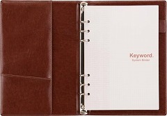 シンプルな合皮製の使いやすいシステム手帳。スリムサイズですっきりと持ち運びできます。