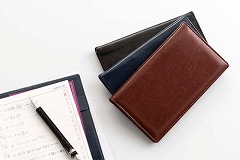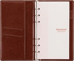 シンプルな合皮製の使いやすいシステム手帳。ジャストリフィルサイズですっきりと持ち運びできます。