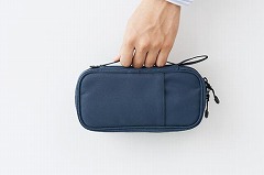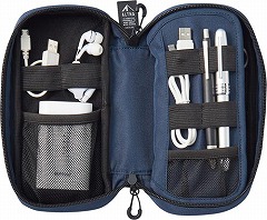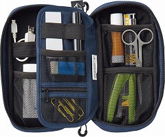 デジタルガジェットや文具小物の収納に便利な見開きタイプ。