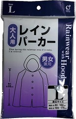 男女兼用のレインパーカーです。コンパクトに折りたたんで、持ち運び可能。急な雨の備えに。