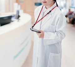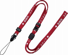 院内で医療用端末を取り付けるためのストラップ。ひと目でわかる「+医療用スタッフ+」の名入れ仕様。長さ900mm、10mm幅のストラップ院内で医療用端末を取り付けるためのストラップ。ひと目でわかる「+医療用スタッフ+」の名入れ仕様。長さ900mm、10mm幅のストラップ