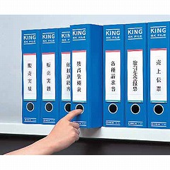 キングジムの片開きファイルです。指掛け穴付きで棚から取り出しが簡単にできます。