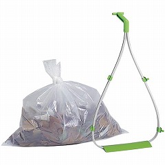市販のゴミ袋をセットし、ゴミを集めてそのまま楽に捨てられます。落ち葉など、かさばるゴミを集めるのに便利です。