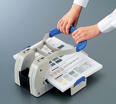 軽い力で、一度に大量の書類を穴あけできる強力パンチ。予備の替刃、刃受けの収納に便利な収納ボックス付きです。