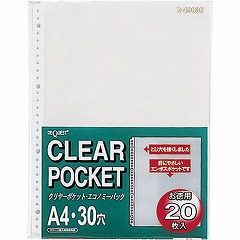 綴じ穴部をテープ補強したリフィルクリヤーポケット。エンボス加工しています。