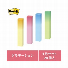 くり返し貼ったりはがしたりできるポストイット通常粘着製品です。上品なグラデーションカラー。一行メモ、見出しに便利なサイズ。資源の有効利用を考え、古紙パルプ配合率100%の再生紙を使用しています。