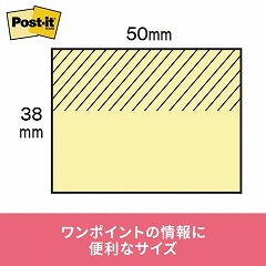 くり返し貼ったりはがしたりできるポストイット通常粘着製品です。一言メモに便利なサイズ。資源の有効利用を考え、古紙パルプ配合率100%の再生紙を使用しています。