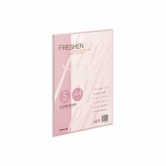 POPで爽やかな印象の透明カラーを採用したコクヨのクリヤーブック「フレッシェン」。薄いので持ち運びに便利。表紙が透明なので、提出ファイル用の見出し表紙として使えます。