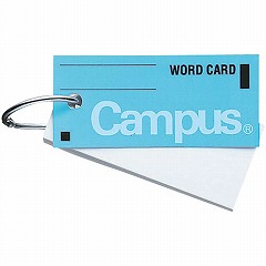 キャンパスの単語カード。カードリング綴じ。