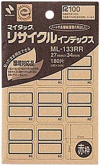マイタックリサイクルインデックスは、書類に貼ったまま再生処理ができる、環境にやさしい製品です。古紙パルプ配合率100%、白色度70%の再生紙を使用。インクジェットプリンタで印刷できます。