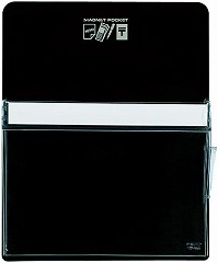 金属面に貼り付けられるマグネットタイプの書類用ポケット。ポケットの中身が記入できる差換式大見出し付きです。