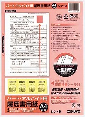 履歴書用紙<パート・アルバイト用>です。