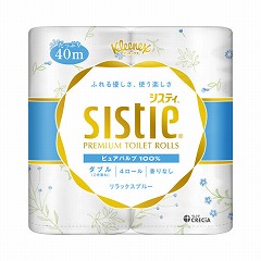 トイレ空間をやさしく華やかに彩る、温かみののあるクラフト風花柄のブルーのトイレットペーパー。パルプ配合にこだわった、ふんわりなめらかな肌ざわり。